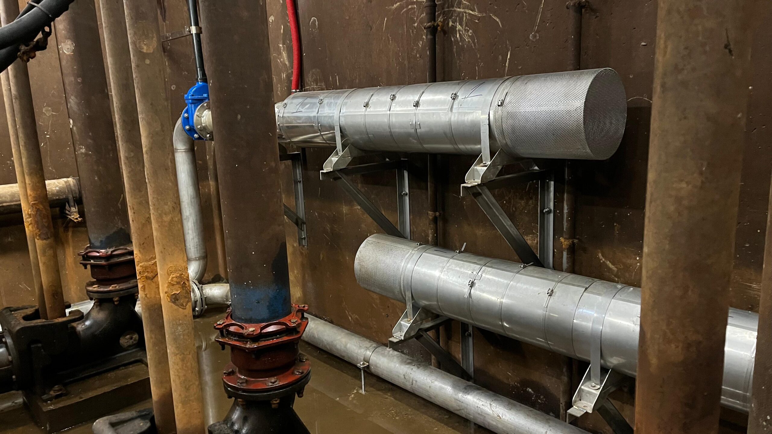 Two submersible water supply pumps, LOWARA Z10150 04-L8W, were installed in an underground pump station. The pumps were connected to the existing firefighting pipeline, which is equipped with above-ground firefighting monitors (water cannons).