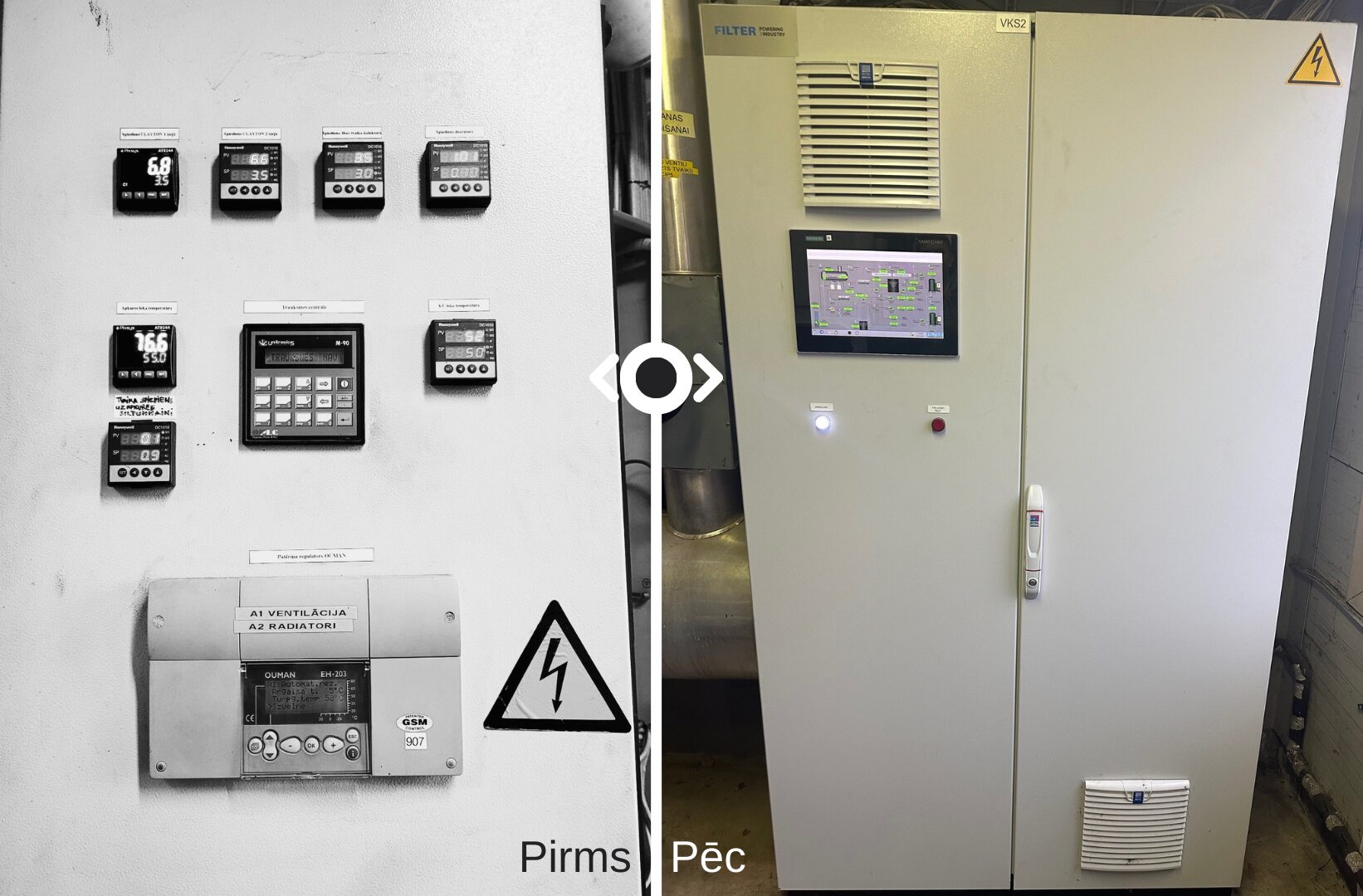 Trīs automatizācijas sadalēs tika nomainīti un atjaunināti vadības kontrolieri un operatora paneļi, savukārt galvenā katlu mājas vadības sadale tika pilnībā aizstāta ar jaunu risinājumu. Iepriekš izmantotā sistēma, kur katru vadības loku pārvaldīja atsevišķs regulators, tika aizstāta ar centralizētu vadības risinājumu, kur visu procesu vadību nodrošina centrālais PLC kontrolieris ar 12 collu operatora paneli.